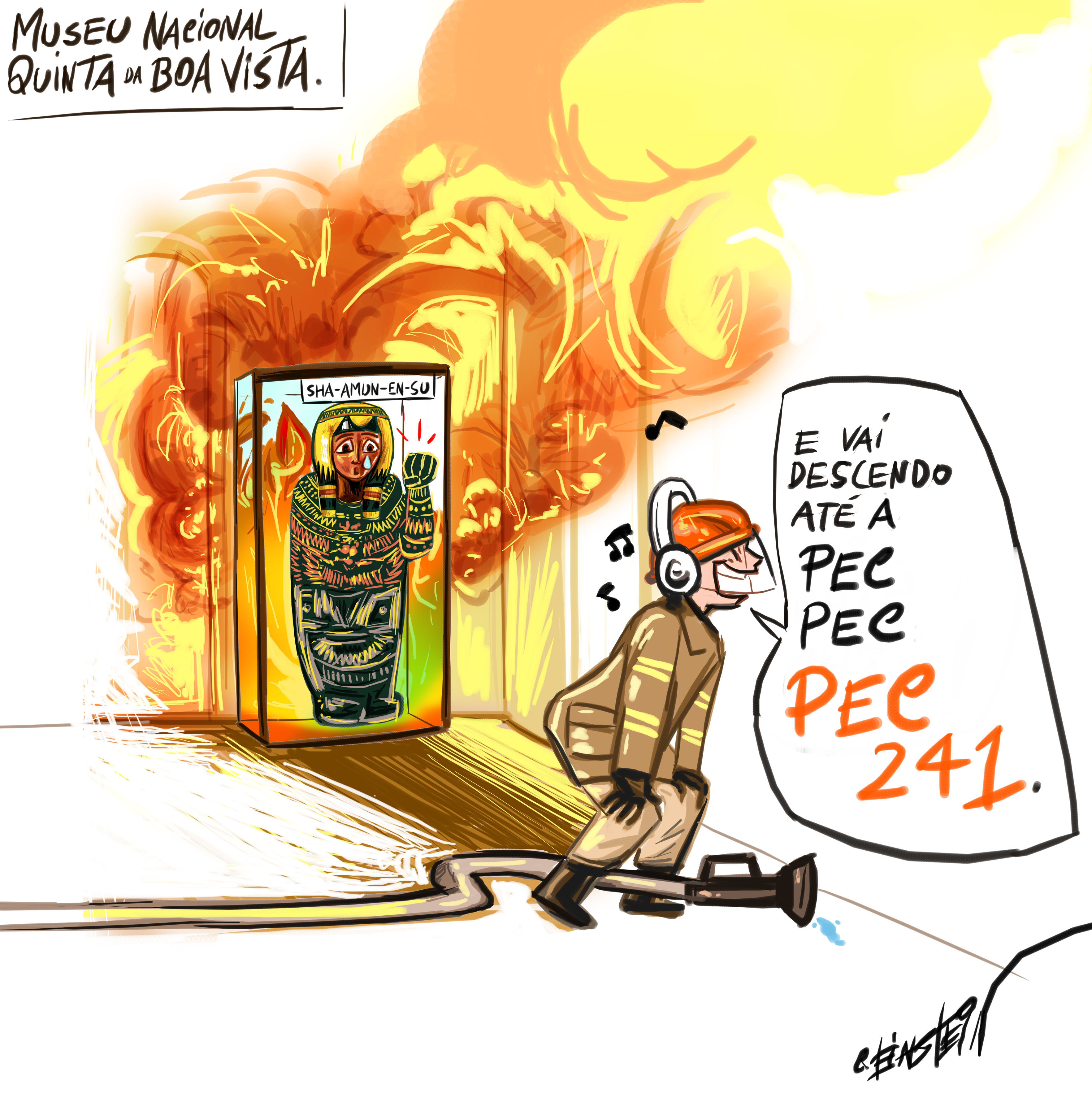 Cartuns sobre o museu incendiado