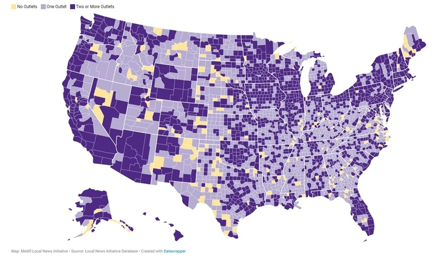 Segundo o relatório State of Local News 2025, feito pela Medill School of Journalism da Northwestern University, que acaba de ser divulgado, 40% dos jornais desapareceram desde 2005 e 50 milhões de pessoas já vivem em regiões sem cobertura jornalística sobre assuntos da comunidade.